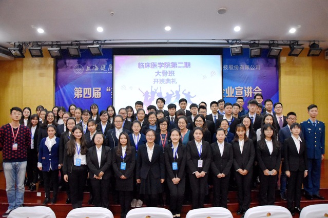 2017年11月18日晚,上海健康医学院临床医学院第二期大学生骨干培养班(以下简称“大骨班”)在200人报告厅开班。出席开班仪式的有临床医学院党总支书记、院长蔡巧玲、校团委副书记马志波、临床医学院党总支副书记罗瑾琰、临床医学院学生党支部书记施毓玲、临床医学院团总支书记徐婷以及120名大骨班学员。
