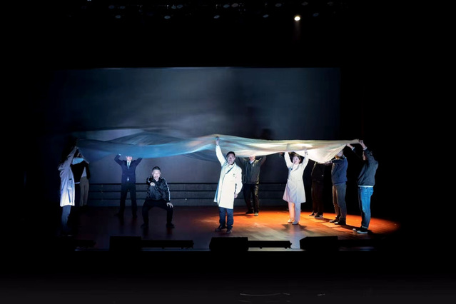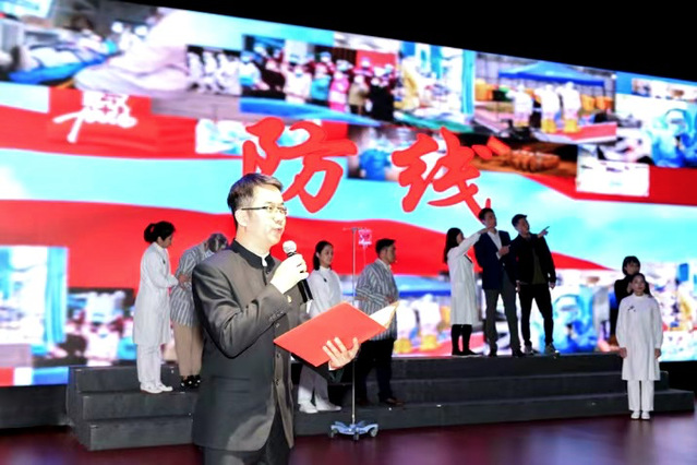 参观结束后,主题活动出席者一起观看了根据附属周浦医院抗击新冠肺炎的真实经历创作的原创抗疫朗诵剧《防线》,本剧向大家讲述周浦医院里发生的一幕幕感人的战“疫”故事。“我们将继续发扬‘敬佑生命、救死扶伤、甘于奉献、大爱无疆’的医者精神,坚守家国安康,继续奋斗,为早日取得疫情阻击战的全面胜利贡献力量”,《防线》策划顾敏表示,“我们用艺术的形式,谱写医者初心,展示医者风采,诠释抗疫精神,讴歌奋斗人生,为疫情防控鼓舞士气。”