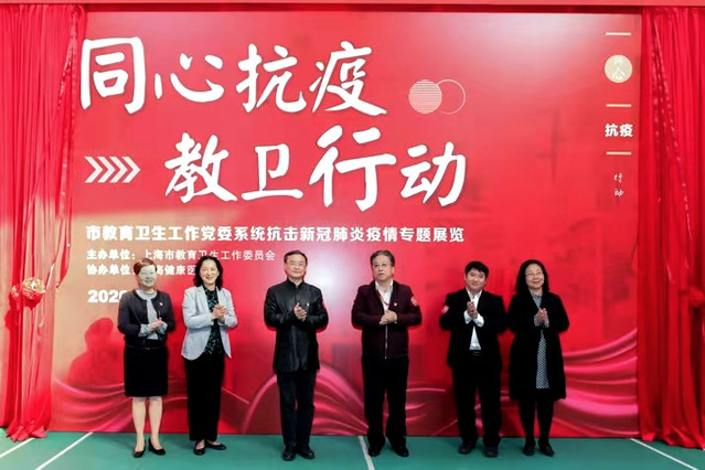上海市教卫工作党委宣传处副处长江鸿波出席揭幕仪式并讲话。他强调,本次活动是贯彻落实习近平总书记在全国抗击新冠疫情表彰大会上的重要讲话精神,把“生命至上、举国同心、舍生忘死、尊重科学、命运与共”的伟大抗疫精神和疫情防控经验启示宣传好、解读好、弘扬好的切实举措,也是推进更多资源向学校思政教育开放,共同做大“四史”学习教育育人格局,共同推动“三全育人”综合改革试点取得新突破的探索和尝试。