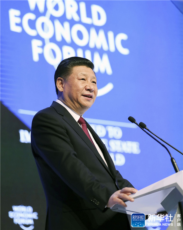 2017年1月17日,习近平在瑞士达沃斯国际会议中心出席世界经济论坛2017年年会开幕式,并发表题为《共担时代责任 共促全球发展》的主旨演讲。新华社记者 兰红光 摄