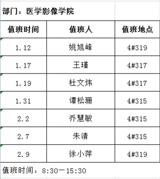 医学影像学院2023年寒假值班表