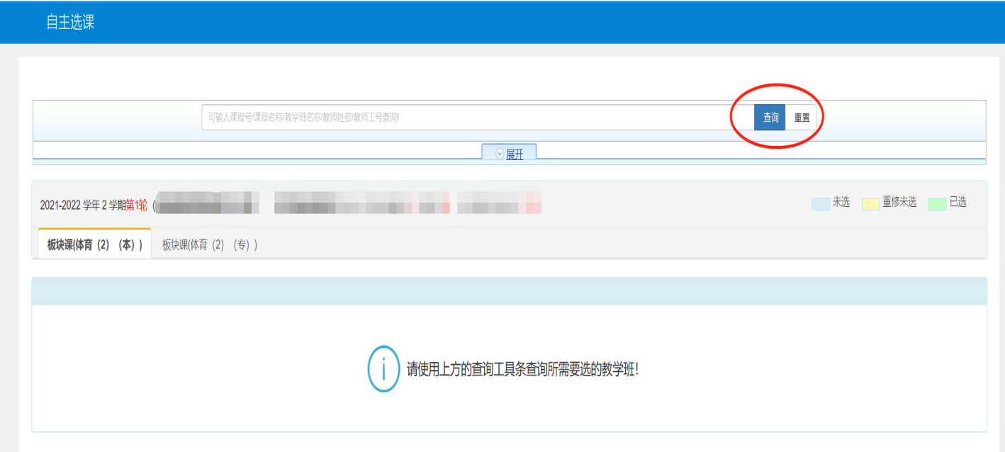 (二)点击“查询”查看可选班级