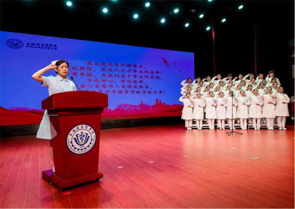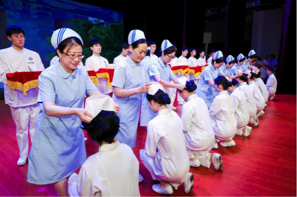 上海健康医学院党委书记郭永瑾表示,传光授帽仪式是每位护生踏上护士道路的成人礼,开展传光授帽仪式是学校立德树人的重要载体,是一种精神的传承,也是贯彻落实习近平总书记关于“‘大思政课’要善用之”的具体体现。庄严仪式的背后蕴含深意,点燃的蜡烛,象征着生命和希望,洁白的护士服和燕尾帽,是对守护生命的担当。希望同学们接好接力棒,继承发扬南丁格尔精神,保持对知识的渴望,不断精进技能,在做事中增长才干、锤炼品格,秉承“厚德至善、健行康民”的校训精神,把小我融入祖国的大我、人民的大我之中,为我国护理事业的发展、为推进健康中国、健康上海的建设贡献青春力量。