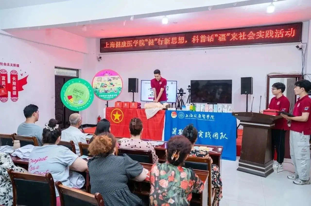 7月中旬,这支名为“‘健’行新思想,科普话‘疆’来”的大学生暑期社会实践团队又出发了。今年,他们先后来到喀什市西域大道卫生服务中心和喀什市西域大道街道,面向当地村民开展了3场主题教育宣讲、健康知识科普和急救技能科普演示,服务听众近1500人,现场发放急救包200套。“全球女性最高发的癌症第二名,是它!而这种癌症,是可以通过注射疫苗来预防的。”上健医的小小宣讲员面对台下的新疆各族女性,将宫颈癌的病因、如何预防等娓娓道来。他们还发挥医学生的专业特长,现场开展螺旋包扎、肘部“8”字包扎、头部帽式包扎等包扎技能“手把手”教学,并通过知识问答、现场互动,让更多听众提升了外伤现场应急处理能力。不少当地村民积极上台,向上健医的志愿者们讨教包扎手法,现场反响热烈。