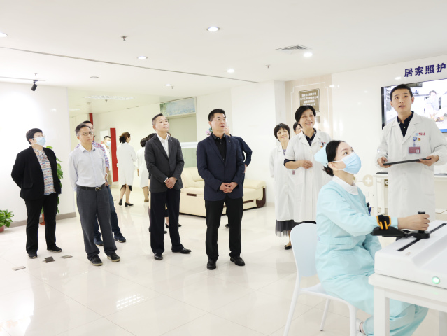 会前,吴韬校长一行参观了老年主动健康智能照护平台应用示范基地、百年院史展厅、文化长廊、5G超声诊断培训中心及新门诊大厅等。