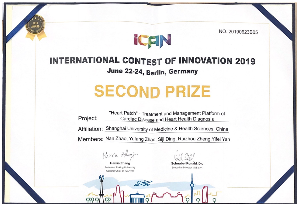 对此次大赛,我校领导及相关职能部门、学院高度重视。唐红梅副校长、张梅处长、孙丽萍副院长对赴德国柏林比赛做出了周密部署,赛前多次召开会议,面对面指导学生,从实际出发落实备赛的每一个细节。同时,医疗器械学院教师白宝丹老师指导参赛学生高效利用课余时间,紧贴临床实际需求,进行作品制作、改良,增加了基于深度学习的心律失常自动识别等功能,为智能诊断等难题提出了解决方案,突出其临床用途和社会公益性,提高了作品的完整度和科技创新性。在英语方面,则得到了外语教学部Dave和医技学院彭楠的耐心指导。这次比赛的顺利进行和优异成绩的取得,正是我校跨部门合作、跨专业协作、医工融合良好氛围的最佳体现。