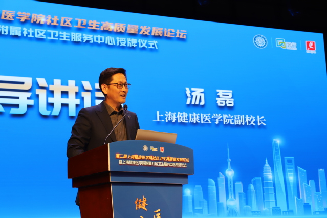 12月27日下午,第二届上海健康医学院社区卫生高质量发展论坛暨闵行区4家学校附属社区卫生服务中心授牌仪式在闵行区马桥景城文化中心举行。我校副校长汤磊、闵行区卫健委主任杭文权、副主任马应忠,马桥镇人民政府镇长刘冬梅,4所附属社区所在街镇(工业区)分管领导以及学校社区卫生服务中心健康联盟成员单位的代表和专家共计百余人参加。