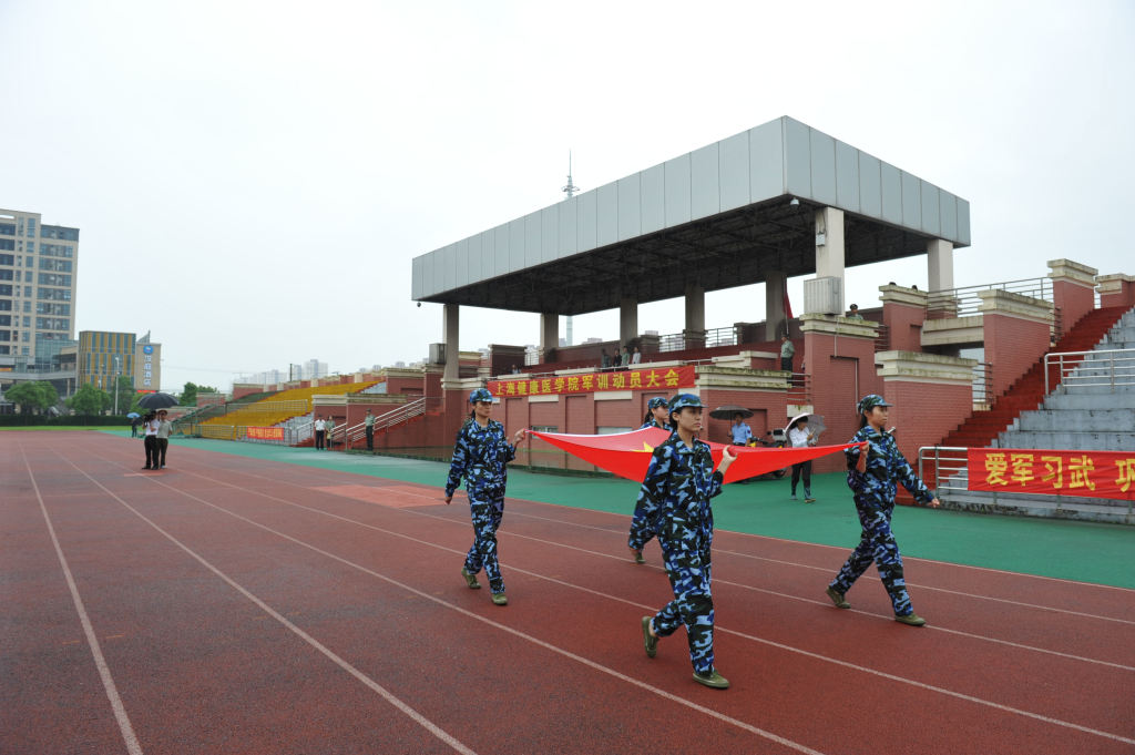 随着郑沈芳书记宣布“军训动员大会正式开始”,四名学生护旗手,手擎国旗迈着正步,步履铿锵地走向升旗点。在嘹亮的国歌声中,五星红旗冉冉升起。来自视光2班的薛觅捷同学作为学生代表首先发言,他表示在军训中,一定会以一名“准军人”的身份严格要求自己,听从指挥,服从命令,严格遵守军训纪律和作息时间,展现出健康医学院学生自强不息的风采。