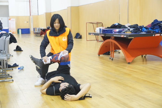 你以为这样就结束了吗?不不不!康复学院派出志愿者为同学进行赛后服务将现场气氛又推向了另一个高潮!
