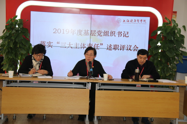 12月27日,我校召开2019年度基层党组织书记落实“三大主体责任”述职评议考核会议。校党委书记郑沈芳,校党委副书记、纪委书记李明磊、校党委副书记于莹,各党总支书记、副书记、直属党支部书记、各二级学院党建员、教师及学生党支部书记共60余人参会。会议由组织部部长郭戎静主持。