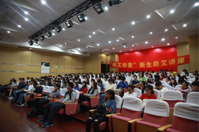 此次很荣幸邀请到周浦医院皮肤科主任、南海医院兼职教授、上海医学会皮肤性病分会委员王国江教授为新生进行防艾的专题讲座。讲座的内容包括艾滋病的产生、艾滋病的传播途径、易感人群,政府对于艾滋病的“四免一关”政策等。