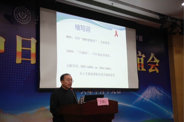 讲座中,王国江教授以孔子的语录“饮食、男女,人之大欲存焉”引入本次讲座内容——性病与艾滋病。他以生活中的名人告诫我们艾滋病距离我们并不遥远。王教授将艾滋病发展的历史逐个分析,并插入自己在医院治疗艾滋病的小故事给讲座增添些许趣味,同时王教授还向同学们介绍了当下各国艾滋病感染者的发展趋势、世界对于艾滋病病人的治疗以及中国对于艾滋病治疗的卓越成就。