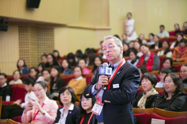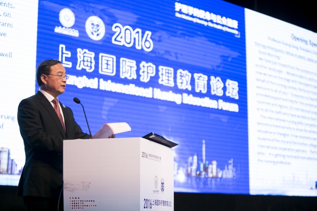 论坛主席黄钢在开幕演讲中感谢远道为“健康”事业而来的各国护理教育专家,感慨日新月异的科技发展,对护理人文关怀提出了更高的要求。他鼓励同学们今天膜拜和敬慕专家偶像,明天要立志成为他们中的一员,提出学校“国际化”发展战略要致力于为学校专业发展搭建国际交流与合作的桥梁,为延伸学科专业发展空间创造条件。论坛主持人由护理学院主持工作副院长顾艳荭、国际教育学院名誉院长玛丽莱姆、仁济医院护理部主任杨艳、质子重离子医院护理部主任万宏伟担当。论坛围绕了现代信息技术在护理职业中的渗透与应用、全球老年护理发展趋势等焦点话题展开研讨,专家见互相共鸣,交换观点,碰撞出各国护理教育发展的智慧火花。