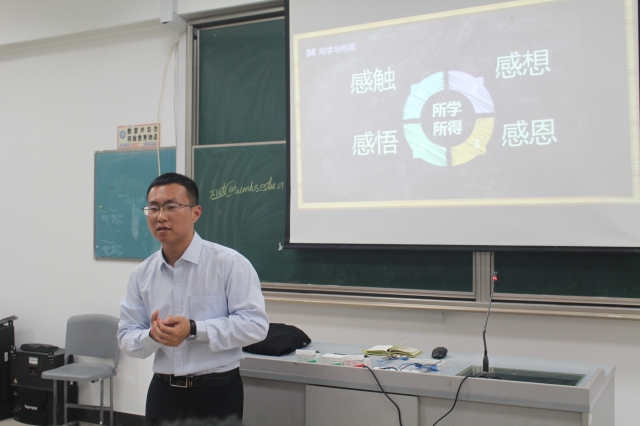 紧接着校学生会主席马宇阳为学员们带来《如何做好一名学生干部》。马宇阳同学以自身的经历和学员们分享学生干部的心得,告诉学员们应该学会放低自己,认清自己的能力和极限,完全展示自我,不随波逐流。在交流中,马宇阳同学从“佛学与理论”、“演讲与口才”、“个人与团队”、“所学与所得”四个模块为学员们讲述如何做好一名学生干部。在“演讲与口才”模块中,马宇阳同学强调作为一名学生干部在对外交流的过程中要了解身份,时机和细节的重要性;在“个人与团队”模块中提醒学员们作为学生干部要注意服务基层,让大家有一个“家”的归属感;同时提出学生干部需要有互相帮助的意识、关键的定时汇总、正确的方向和合理地工作分工。最后,马宇阳同学提出“当仁不让于师”的思想,让学员们在竞争和进步中学会感恩与奉献。