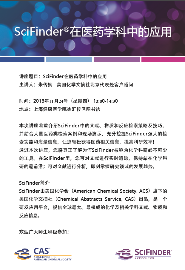 数字资源系列讲座十——SciFinder在医药学科中的应用