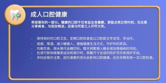 口腔健康是国民健康的重要组成部分,也是推进健康中国建设的基础性环节。从生命早期的乳牙萌出到银发岁月的功能维护,口腔照护贯穿全生命周期,关系着人民群众的生活质量与幸福指数。让我们以世界口腔健康日为契机,凝聚社会共识,践行科学理念,将口腔健康融入日常、做在经常,以全民健康素养的提升,为美好生活筑牢健康根基。