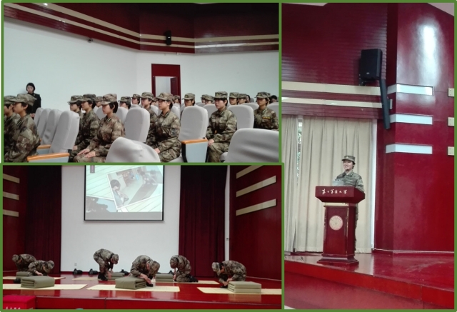 护理国教联合党总支副书记薛文正与护理学院辅导员张红娟应邀参加了此次报告会。总结报告会上,我校学生一身戎装,上台进行叠被、打背包、列队展示。短短1分多钟,同学们把军被叠成了方正的“豆腐块”,绑成了“三横两竖”的军包。列队展示中,我校学生用威武的军姿、整齐的步伐、响亮的口号坚毅的目光,展现出良好的精神面貌。之后,胡奕奕同学代表合作培养生发言她表示同学们会将此次训成果转化成刻苦学习、努力实践的动力。