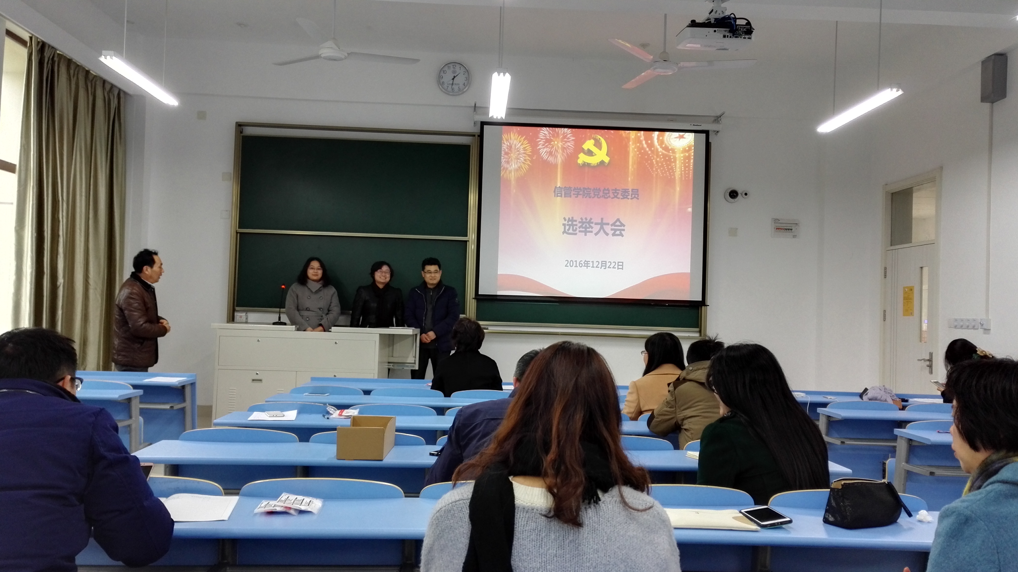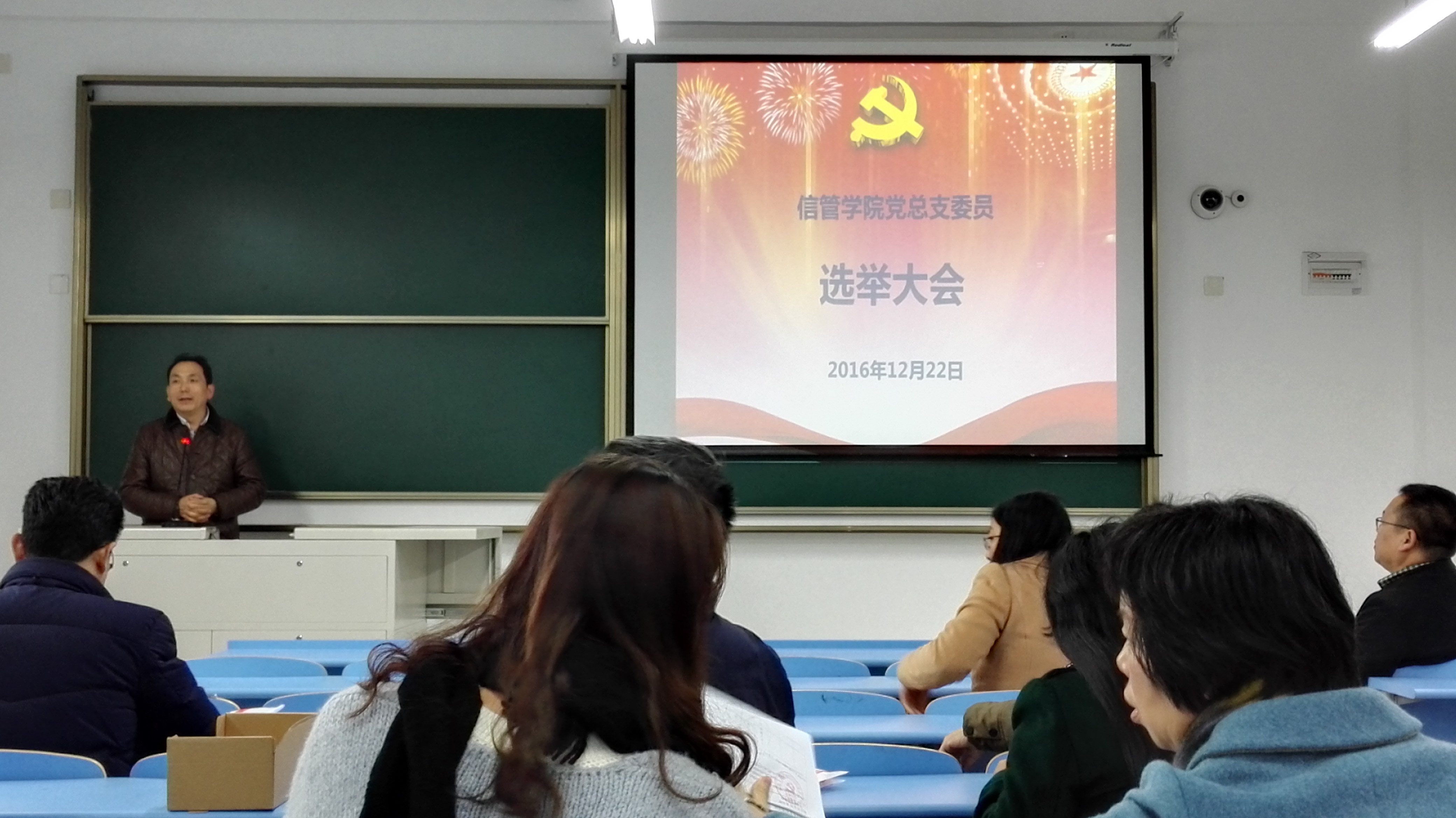 12月22日中午,信管学院召开全院大会暨党总支委员选举大会,学院、党总支负责人及全体教职工参加会议。