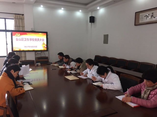 223日下午,金山区卫生学校党支部召开党员大会,布置专题组织生活会相关工作,讨论2017年党支部工作计划,集中学习《关于新形势下党内政治生活的若干准则》和《中国共产党党内监督条例》。