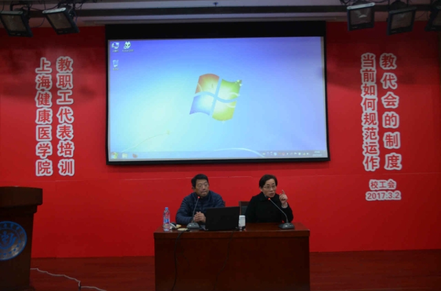32日下午,校工会在北苑一号楼200人报告厅举办2017年度上海健康医学院教职工代表培训,特邀上海工会管理学院长期从事“工会理论”与“劳动关系”专业的教学与研究的王贤森教授主讲。