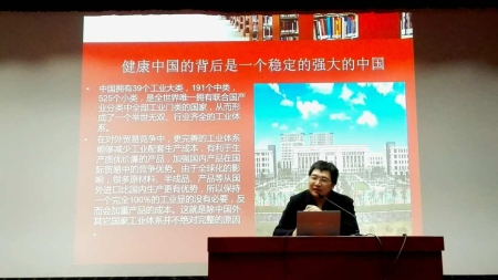 在讲座中,陈焱老师指出,健康中国的背后是一个稳定的强大的中国。回顾历史,在乾隆时期英国大使马格尔尼出使中国的回忆录和无产阶级革命家朱德的回忆录中,中国人民的生活水平一直处于贫困状态,人们对于食物的要求仅是足以果腹即可,无其他奢望,如此状态何谈健康,人民无健康何来国家昌盛。人民是国之根本,人民健康是国家繁荣昌盛的关键。
