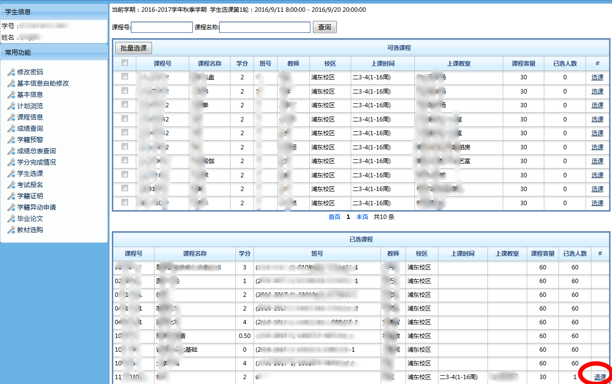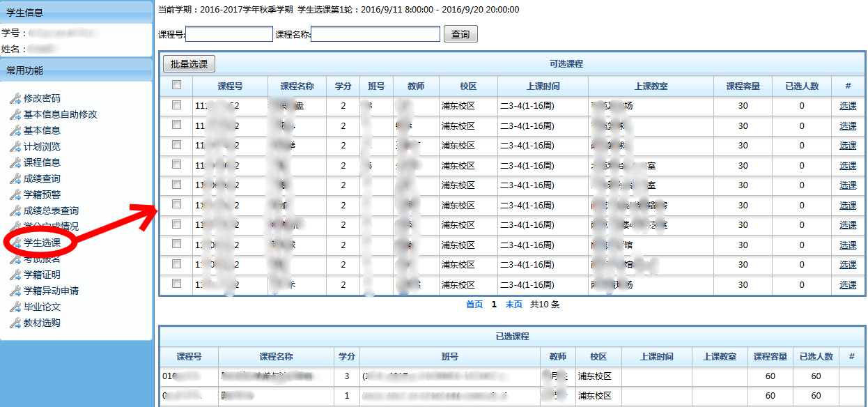 1、 点击菜单“学生选课”