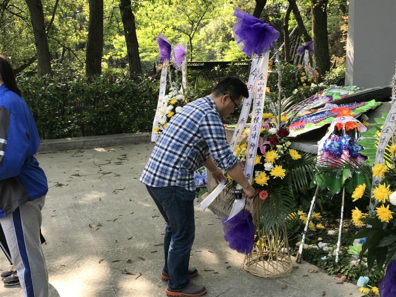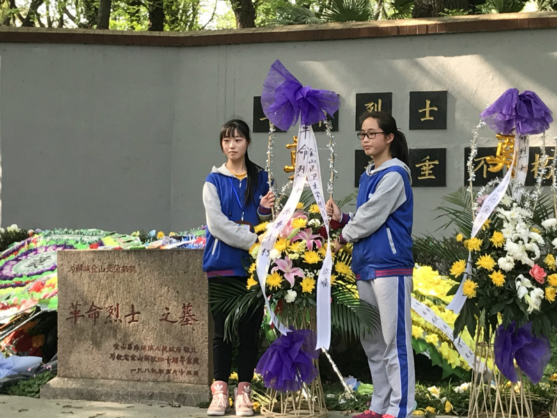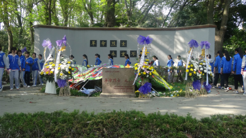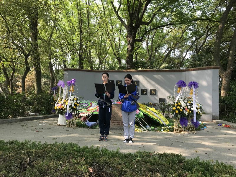 同学们了解到,在1949年有一位解放军战士为了解放朱泾而牺牲被葬在了这里,受人们瞻仰祭奠。在活动中,由学生代表向烈士墓敬献了花圈,同学们向革命烈士默哀、鞠躬。学生代表王雅婷同学发言,表示将来要服务和奉献社会,是我们青年学生无悔的选择。最后师生们瞻仰了烈士墓。