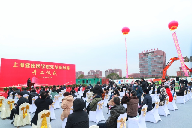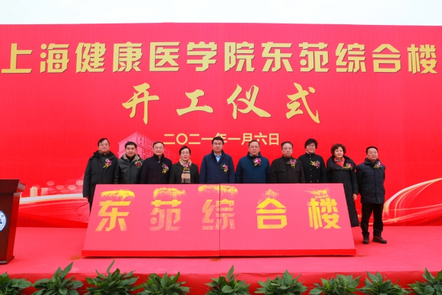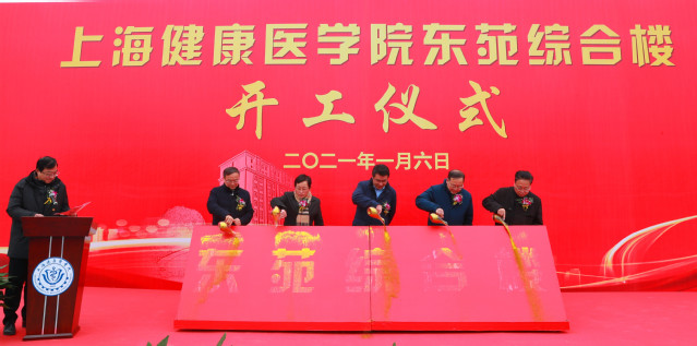 1月6日上午,上海健康医学院东苑综合楼项目开工仪式举行。上海市教卫工作党委副书记、市教委副主任闵辉、浦东新区副区长李国华、市人大教科文卫委员会副主任委员、上海健康医学院原党委书记郑沈芳、江苏南通三建控股有限公司总裁周炳高、市教卫工作党委二级巡视员杨伟人(主持学校党委工作)、校长黄钢及其他校领导等出席。陈小冰副校长主持开工仪式。