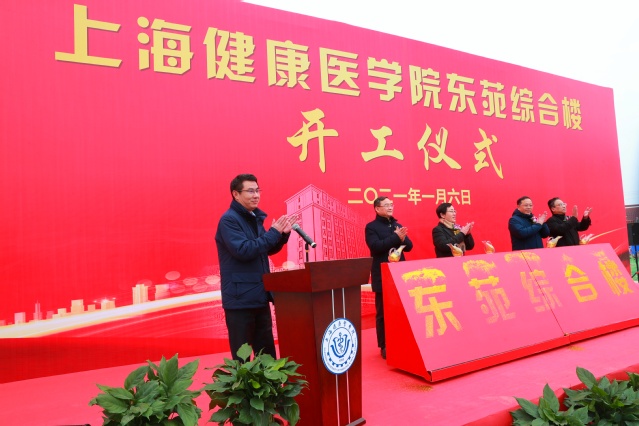 市教卫工作党委副书记、市教委副主任闵辉宣布“上海健康医学院东苑综合楼项目正式开工”。