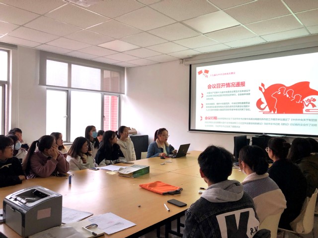 2020年10月26日—2020年10月29日在北京举办了第十九届中央委员会第五次全体会议,为深入学习贯彻党的十九届五中全会精神,预备党员钱咏雯于2021年3月11日于北苑6号楼402开展了以“深入学习贯彻党的十九届五中全会精神”为主题的学习会。