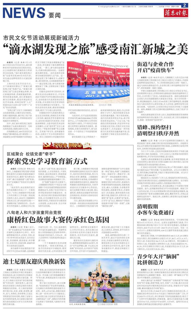 3月29日,上海健康医学院党委与周浦镇党委举行区域化党建深度融合发展签约仪式,聚焦“我为群众办实事”,确立党建联建“七联”机制,开启“区域聚合”的党史学习教育新方式。