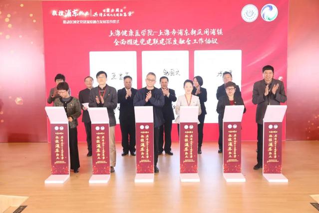 聚焦“学党史、悟思想、办实事、开新局”12字下真功夫,3月29日,上海健康医学院党委与周浦镇党委举行区域化党建深度融合发展签约仪式,聚焦“我为群众办实事”,确立党建联建“七联”机制,开启“区域聚合”的党史学习教育新方式。当天,上海市浦东新区周浦镇大中小学思政课一体化建设实践基地正式授牌,开启了“上海健康医学院-周浦中学-澧溪中学-周浦小学”一体化思政教育大格局。