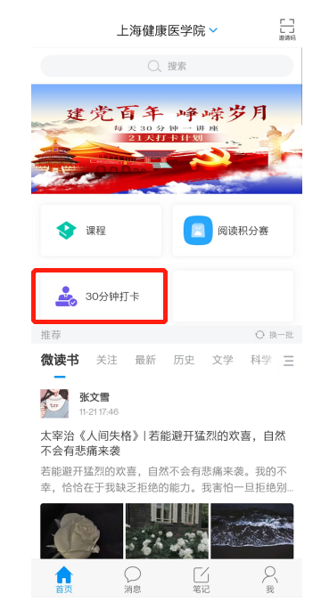 Step2 :“学习通”登录完成后进入“上海健康医学院”页面