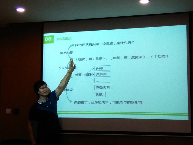 在会议伊始,刘红首先对医学影像学院2018年学生竞赛平台建设情况进行说明,对各类学生竞赛进行布置,并对学校所开展的“互联网+大学生创新创业大赛”进行了分工和动员。在动员会后,由远道而来的复旦大学自然语言处理研究组颜航助理研究员为学院师生作了题为“大数据研究及知识图谱的表示学习”的讲座,双方就教师科研以及学生竞赛合作的可行性展开探讨和对接。