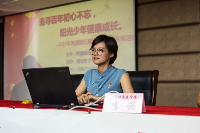 学党史,铭党恩;听故事,塑品质。入党积极分子黄滢斐同学通过党史小知识与青少年进行互动,随后为大家宣讲党的诞生地上海的故事,同时讲述上海先进共产党员的感人事迹、精神品质。