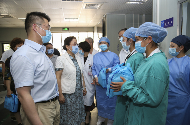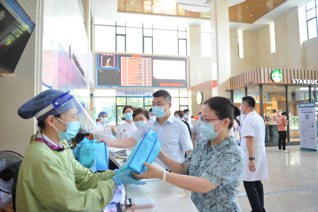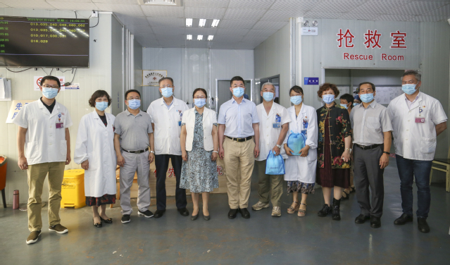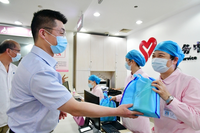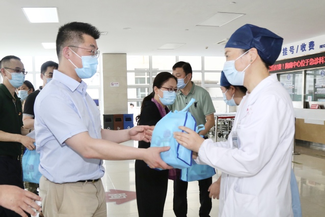 上海连续10天高温考验着各条战线上的工作人员。学校各个附属医院的一线医务工作者也是不畏高温,奋战在岗位上,坚守初心,做人民健康的守护人和白衣天使。为了让附属医院医务工作者感受到夏日一缕“清凉”,校领导班子分别到周浦医院、崇明区中心医院、六院金山分院以及嘉定区中心医院,向急诊、发热门诊、核酸检测等岗位上的医务工作人员以及不畏酷暑坚守门卫安全的安保人员送上了洗发水、沐浴露、毛巾等防暑降温生活用品。