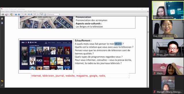 本次远程教学实行小班教学,上课前,法语教师们通过分班测试,根据同学们的法语水平将同学们分成学习小组,开展课程教学。