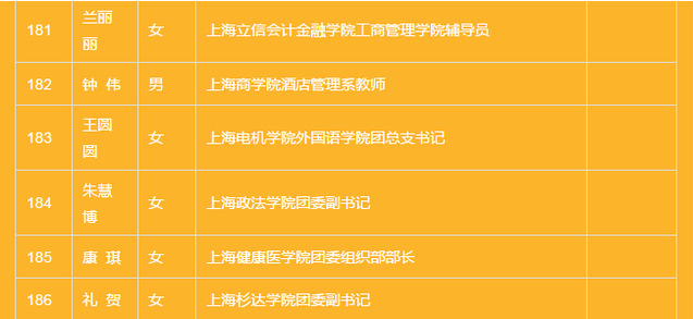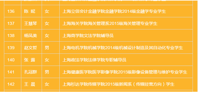 2017年度上海市优秀共青团员拟表彰名单