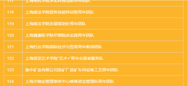 2017年度上海市青年五四奖章(集体)拟表彰名单