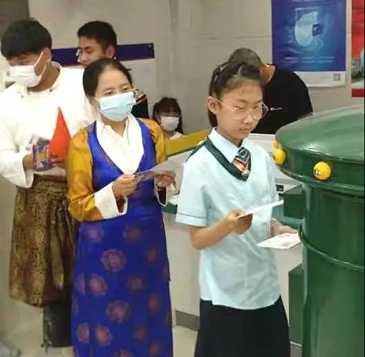 孩子们饶有兴趣地在有声明信片机器前制作起了一张张赋有特色的明信片,现场活动气氛热烈。前期已收到来自云南、青海、新疆、西藏等地的祝福明信片,国庆当天正式启动有声明信片征集活动,以声传情促交流。活动中,同学们一同参观了“民族团结一家亲”五十六民族火花、地铁卡、极限明信片展,了解民族文化,促进民族交流、增强民族自信,树立民族共同体意识。