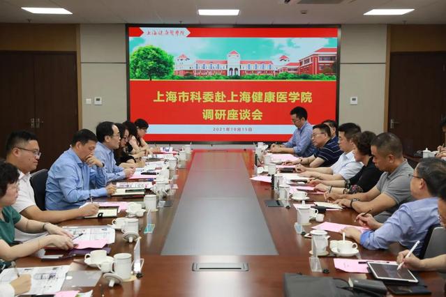 市科委生物技术和医药处处长曹宏明表示,学校办学定位契合健康上海、健康中国的时代需求,办学特色鲜明;学校地处张江园区,地理位置优越;青年科技人才的应用型优势显著,科创潜力巨大。曹宏明指出,学校要与张江医学园区紧密结合,以应用导向精准发力,用科技赋能产业,推动高质量发展,打造张江科学城南片区科技创新“新引擎”。市科委综合发展处副处长王晶、基础研究处副处长李力雄、生物技术和医药处副处长董潋滟、战略规划处副处长吴伊人、基础研究处余婴调研员、生物技术和医药处舒碧芸参加调研座谈,对学校相关工作提出相关意见和建议。