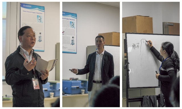 我院超声实验室通过校企合作,配备了多台医用超声仪和多种超声体模,实现超声检查技术教学理实一体化。沈理和周进祝等专家现场指导,为参会老师提供了权威的观摩学习和互动实践的宝贵机会。