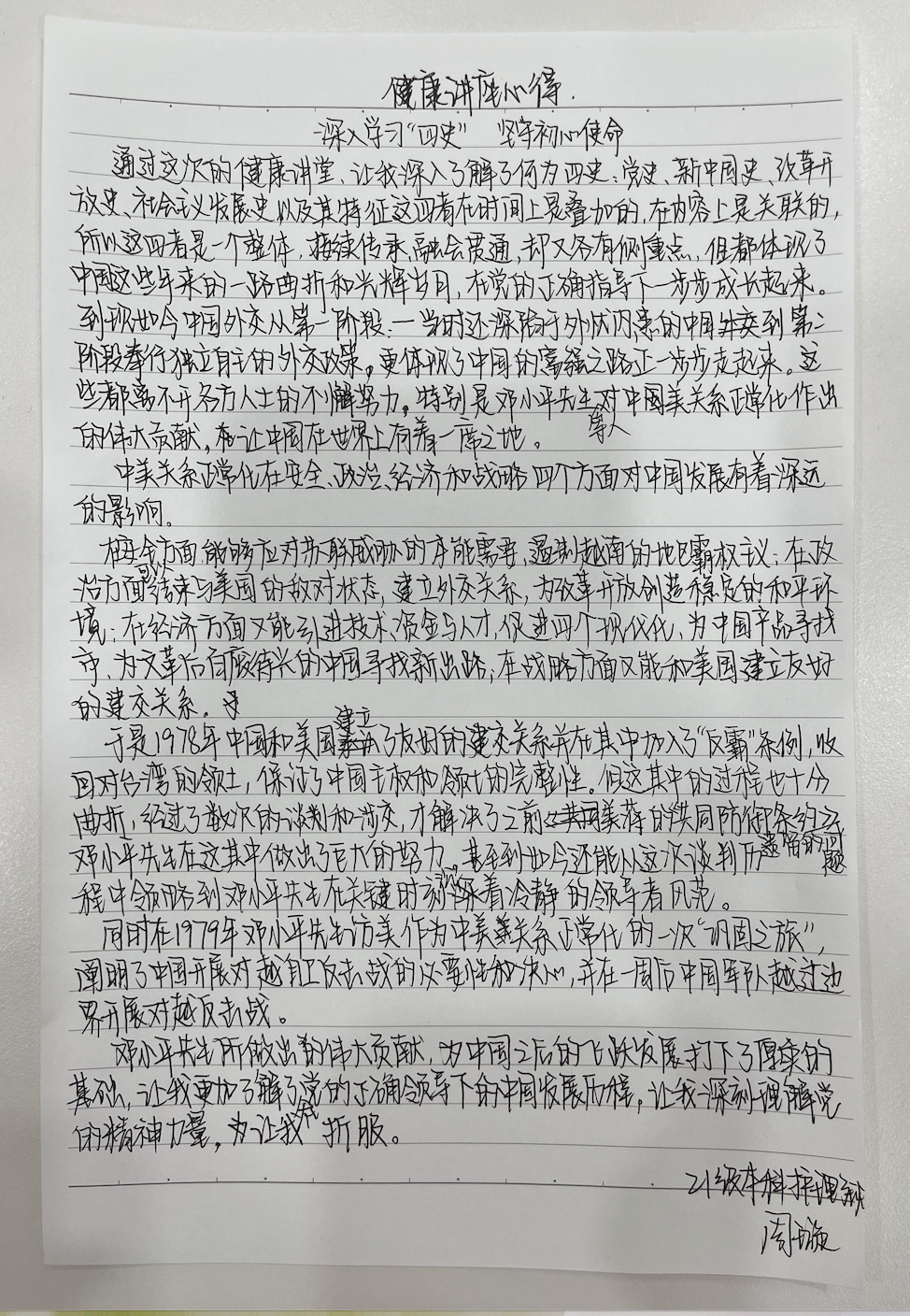 虽然只有短暂的一小时,但不少同学通过这次活动了解了邓小平对于中美关系正常化进程中有多么关键的作用,大家都受益匪浅,纷纷写下自己的感悟和收获。