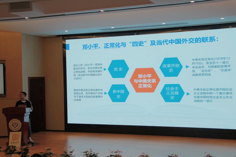 2021年10月26日17:00在北苑1号楼200人报告厅开展了由复旦大学历史学系中美关系史专业博士研究生薛鹏程老师带来的《中国共产党与当代中国外交——邓小平在中美关系正常化进程中的关键作用》讲堂,带领同学们走近历史。