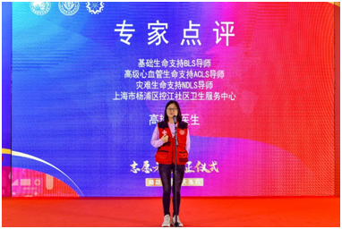 演练结束后,来自上海市杨浦区控江社区卫生服务中心的专家评委高艳敏首先对“健康小叶子”们能够高质量完成整个急救演练过程的专业表现作出了肯定。她提醒各位“健康小叶子”们,如果在志愿服务期间遇到与会人员需要紧急救援,首先要对周围环境和病人进行判断,确认现场环境的安全,确认患者是否需要救助。