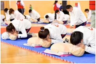 特别的是,本次学校被选入进博会志愿者服务团队的“小叶子”全员通过急救技能培训,为了让“小叶子”们能随时准备应对会场内的突发情况。仪式上特地举行了进博会志愿者急救技能大练兵。“健康小叶子”们熟练运用急救知识,仔细应对每一个环节,力求用最规范的操作流程和标准化的动作完成心肺复苏急救演练。