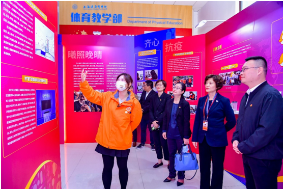 当天的会场入口,还展出了历年“健康小叶子”的进博回忆,各个岗位上的志愿者服务精彩瞬间的照片鲜活生动。展示着学校“市、校、院”三级培训传统;“健康小叶子”的专属进博会医疗急救包;历届进博会志愿者激励徽章......同时,回顾了近年来学校“健康小橘子”品牌及文创产品介绍、助力“双减”行动项目简介、抗疫志愿者系列事迹、金晖为老志愿服务风采等温暖举措。