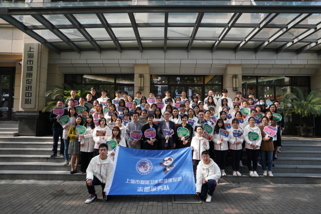 同时举行了爱国卫生与健康促进志愿者上岗仪式,王彤、丁园、黄志勇、顾斐雯、刘惠琳、龚正阳为60名志愿者颁发志愿者服务证书。