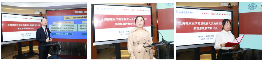 叶熊老师、庞琴霞医生分享课程思政案例、医学生卫何靖讲述叙事医学故事