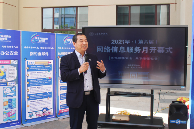 10月29日,学校第六届网络信息服务月开幕式在南苑教学楼举行。本届网络信息服务月以“共筑网络安全 共享智慧校园”为主题,聚焦网络安全和智慧服务,通过互动体验、应用推广、咨询服务、需求调研等多种形式开展。副校长沈国芳出席开幕式并宣布开幕,学校智慧校园建设领导小组成员、学校信息联络员、师生代表等参加开幕式。开幕式由信息管理中心主任李兆伟主持。